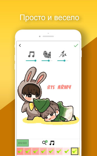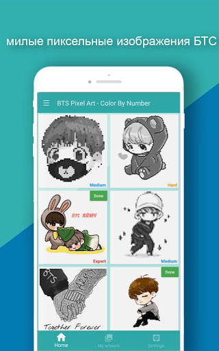 Раскрась красивые изображения звезд K-POP для любого возраста и семьи и почувствуй такие приятные, беззаботные моменты и будь креативным. Освободите своего внутреннего художника и поделитесь своим пиксельным искусством в песочнице со своей семьей и друзьями.