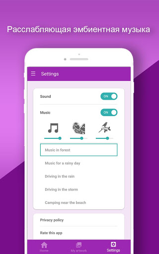 - Расслабляющие звуки при игре со звуками океана, дождя, грома и леса.