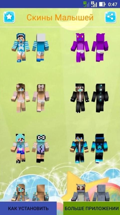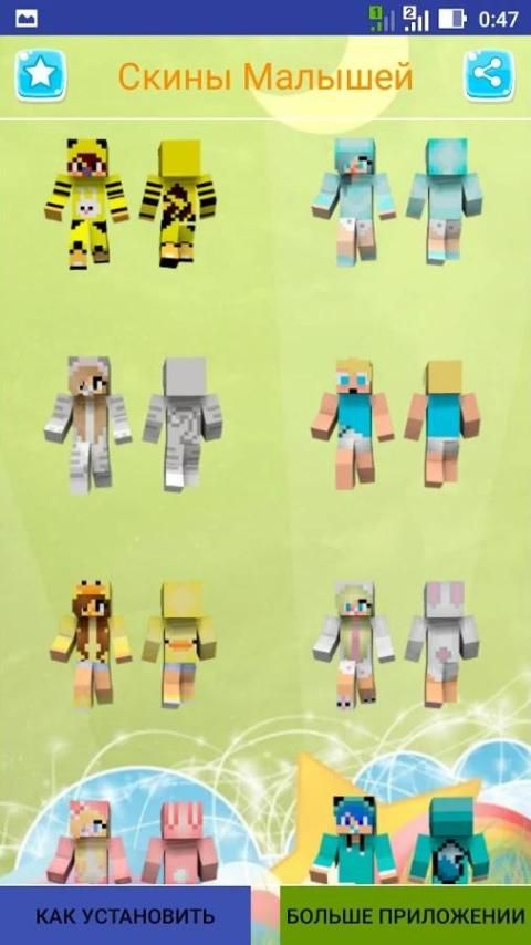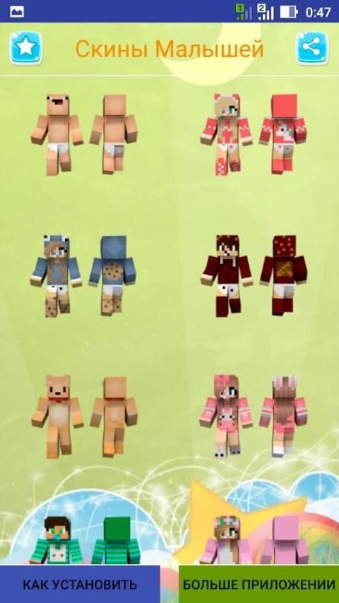 Мы неплохо потрудились и отобрали самые интересные Baby skin для персонажа в игре. В этом приложении вы легко сможете найти себе высококачественный облик baby skins for minecraft pe. Отлично нарисованные плоть до мелких деталей супергерои, злодеи, монстры, персонажи из разных фильмов, также игр и комиксов теперь доступны в таких категориях: