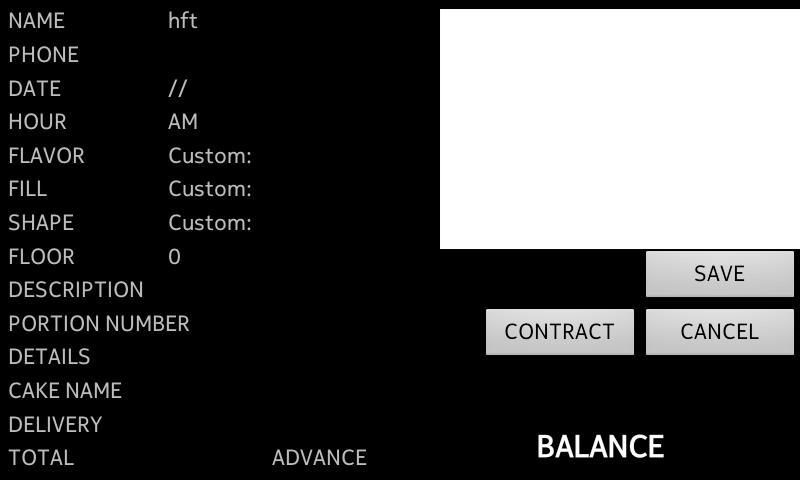 когда вы создаете новый контракт торта, она хранится на устройстве, создает контакт между вашими контактами, так что вы можете связаться с его (ее), а также дата доставки хранится в вашем календаре, вы можете установить сигнал до 10 дней предвкушение к вашему заказу, это, чтобы напомнить вам, что вы должны сделать этот торт.