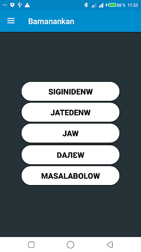 Bamanankan is an educative game application in bamanankan (bambara). To use it, you need to install it on your Android terminal. Its composing five (5) headings stand for the listening skill. You then have to :