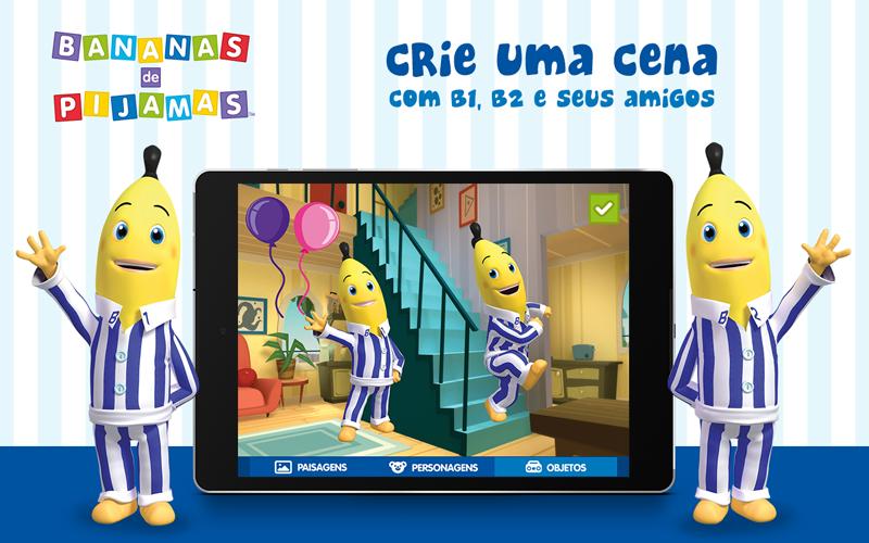 + Crie uma cena com os Bananas de Pijamas. Arraste os elementos da cena e monte o cenário como quiser