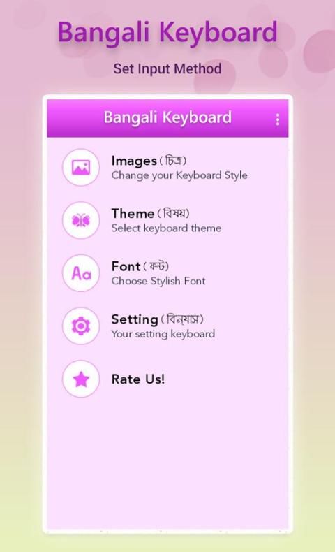 Настройка параметров, используемых для применения параметров в вашем Bangla клавиатуры с различными options.like Общие настройки, Настройки дисплея, настройки шрифта, настройки звука и т.д.