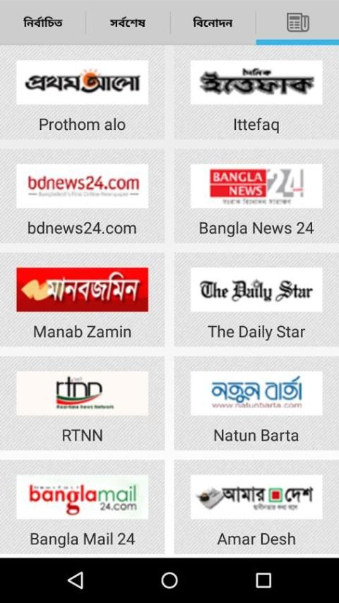 Почти все бангладешских онлайн газеты для удобное для Вас время. В настоящее время поддерживаются газеты Prothom Alo, Би-би-Bangla, Manabzamin, Ittefaq и многое другое ...