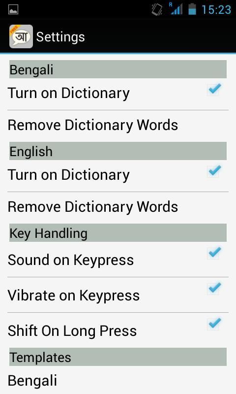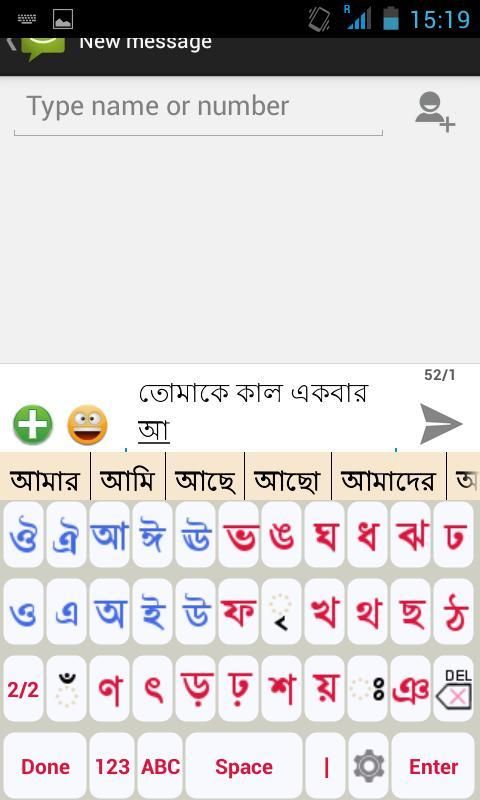 Using this Bangla static keypad, you can write in both Bangla/bengali(বাংলা) & English with intelligent and accurate dictionary predictions on both Android phones and tablets. Numbers, symbols, smileys, attractive extras are also supported. This is a static keypad for those who prefer a static keypad with some additional innovations to ease your writing. The keyboard layout is largely of Inscript. This keypad is an IME (Input Method Editor) and hence you will be able to write in all parts of the phone, WhatsApp, Facebook, Address Book etc. The installation is a little different, follow instructions. After Installation on phone/tablet. Step 1: Settings -> Language & Input -> Choose Bangla Static Keypad IME(Check ON) Step 2: Settings -> Language & Input -> Default -> Select Bangla Static Keypad IME. Additional New words can be added to Dictionary, removed from Dictionary. Common messages supported in templates. Custom Signature supported. Keysound & Vibration supported and optional. More!! Fonts with good rendering should be present on your phone or will show boxes or wrong rendering. This Bangla static keyboard is from Luna Ergonomics, the makers of Panini Keypad, the dynamic keypad, download link here. https://play.google.com/store/apps/details?id=com.paninikeypad.beng Some examples are provided below. সুর্য = স + ু + র + ্ + য প্ৰাচুৰ্য = প + ্ + ৰ + া + চ + ু + ৰ + ্ + য Note that was a Juktakkhor, so you put a ref in between. সামৰ্থ্য = স + া + ম + ৰ + ্ + থ + ্ + য ব্যাপার = ব + ্ + য + া + প + া +র A ja fala is a Juktakkhor too. পরিক্ষা = প + র + ি + ক + ্ + ষ + া আনন্দ = আ + ন + ন + ্ + দ অন্তৰীক্ষ = অ+ন+্+ত+ৰ+ী+ক+্+ষ ভয়ঙ্কর = ভ + য় + ঙ + ্ + ক + র ভাষ্কর্য = ভ + া + ষ + ্ + ক + র + ্ + য এন্ধাৰে = এ + ন + ্ + ধ + া + ৰ + ে প্রেরণা = প + ্ + র + ে + র + ণ + া To know how to type all types of difficult Bangla words, click the link below: http://paninikeypad.com/conjuncts/bangla Follow above examples, after some time you will used to Bangla static keyboard IME for Bangla typing. Experience this new innovative Bangla static keyboard IME.