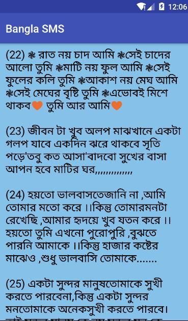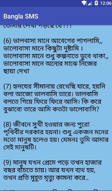 Это приложение, чтобы предоставить вам все Bangla прекрасные смс, что вы можете скопировать и вставить в текст, чтобы отправить смс.