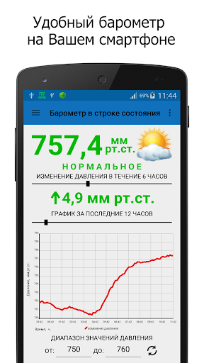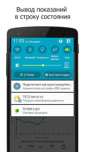 Барометр в строке состояния – приложение для измерения атмосферного давления, на Android устройствах, оснащенных датчиком давления.