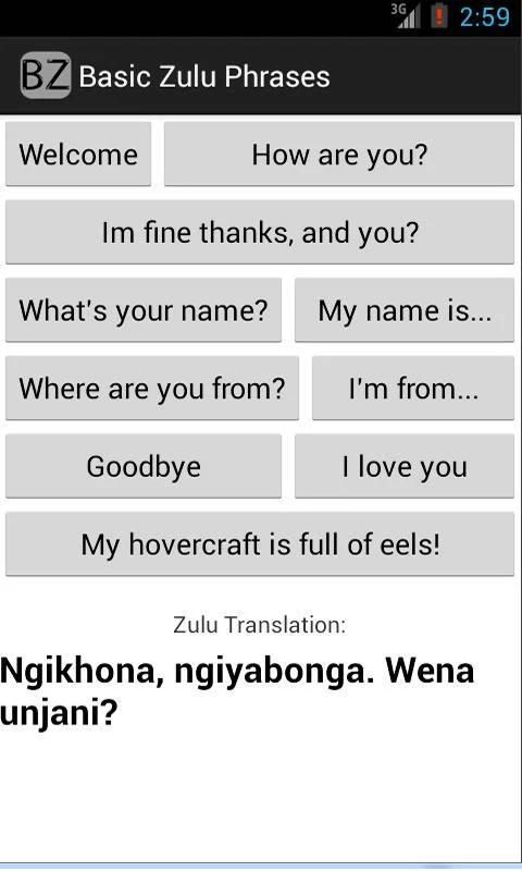 Basic Zulu phrases for the extreme situations in which your hovercraft is full of eels.