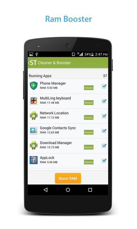 Запуск программы - позволяет вам решить, какие программы вы хотите убить. Этот app позволяет очистить устройство из кэшей, файл остатков и АПК устаревшим. ОСОБЕННОСТИ: Автоматический скорость Boost режим: Speed Booster + памяти пылесос оптимизирует ваши устройства процессор и память, так, что ваш телефон или таблетки ресурсы убираются. Она удаляет нежелательные истории & остаточные файлы держать ваш телефон быстро и до отметки. Телефон пылесос & усилитель модули значительно высвободить пространство на вашем телефоне и увеличить его скорость. Не требуется разрешение корня. Памяти монитора монитор памяти и предупредить пользователя с уведомлением звук на низкой памяти. Новая версия чистого Boost, с стиль дизайна, принося более сжатым, элегантный ultimate пользователей! В то же время функция является более мощным, чем предыдущие версии.