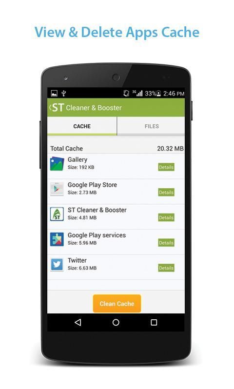 Удаление приложений, которые кэшированных файлов? Откройте приложение? Показать подробности страницы приложения. Если вы просто хотите очистить все кэшированные файлы, вам не нужно ждать завершения строительных список приложений, просто нажмите кнопку «Очистить все файлы кэша». Телефон менеджера является кэш сперма убийца задачи. Mobile, батареи заставка. И что более другие функции включают встроенный Task Killer, белый список менеджер, Boost уровень менеджер & памяти Boost журнал, который помочь памяти Booster Планшетная версия для более эффективного выполнения и дружественные.