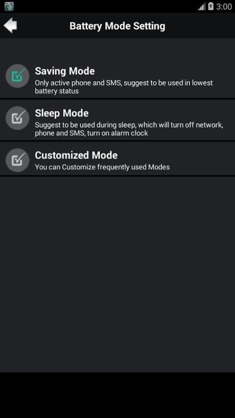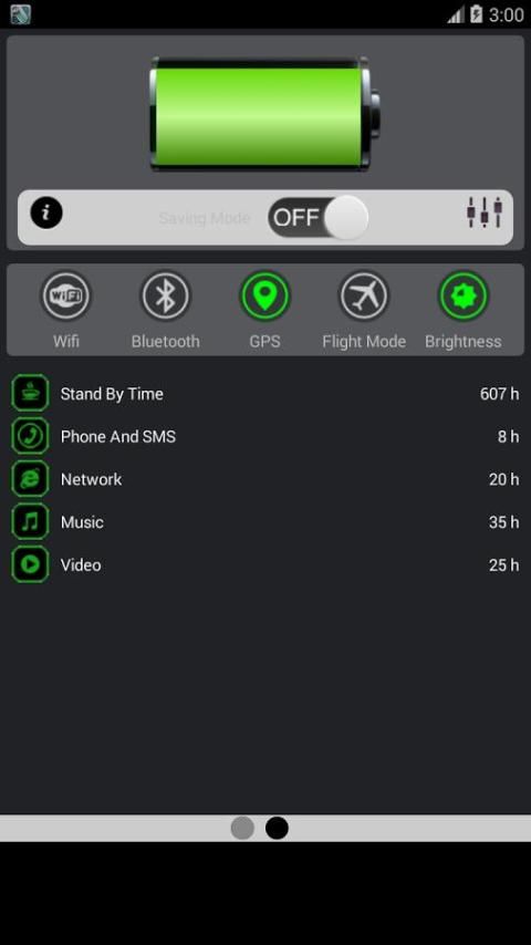заставка Аккумулятор позволяет отключить все дополнительные функции, такие как Wi-Fi, Bluetooth, GPS, звук и другие приложения энергии на устройстве. App предупредит