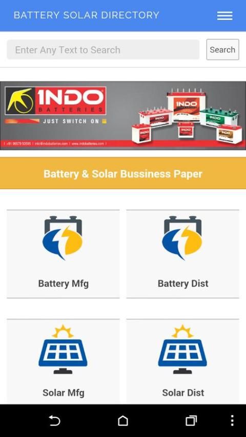Батарея & Solar Каталог является одним из наиболее эффективных и экономичных справочников для батареи и солнечных продуктов. Это, безусловно, является эффективным средством для достижения батареи и солнечной энергетики людей. Это включает в себя такие люди, как Поставщиков сырья, производителей деталей Батарея / аккумулятор, сборщиков, дистрибьюторов, дилеров, поставщиков техники и свинца плавильщики и т.д. в стране.