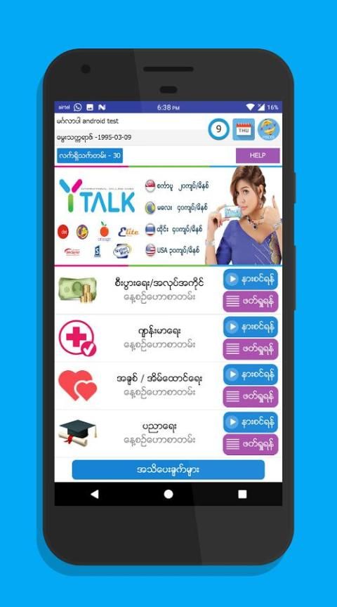 Прогнозы будут отображаться в приложении с помощью текстовых и аудио записывается в собственный голос Мин Тейн Khine в.