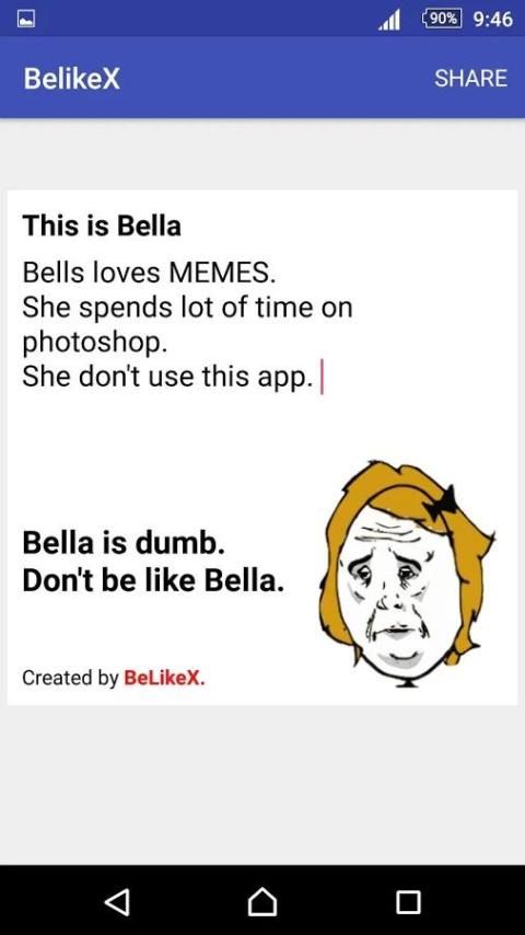 Вы можете добавить мемы для списка недоступен, или вы можете использовать изображение из библиотеки. Поделитесь с друзьями и приятель на Facebook, WhatsApp или любой другой социальной СМИ. и использовать его в умный способ.