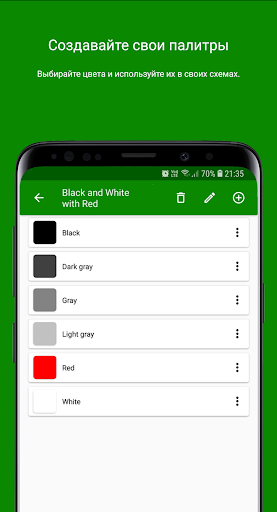 Создавайте свои палитры: выбирайте цвета и используйте их в своих схемах.