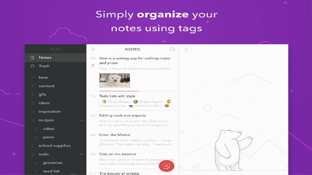 Bear is perfect for everything from quick notes, to code snippets, to in-depth essays. A focus mode helps you concentrate, and advanced Markdown and other markup options are an online writer's best friend. Full in-line image support brings your writing to life, and keep yourself on task by adding todos to individual notes.