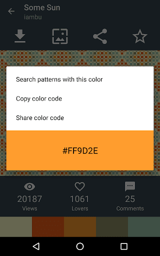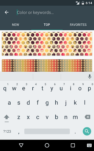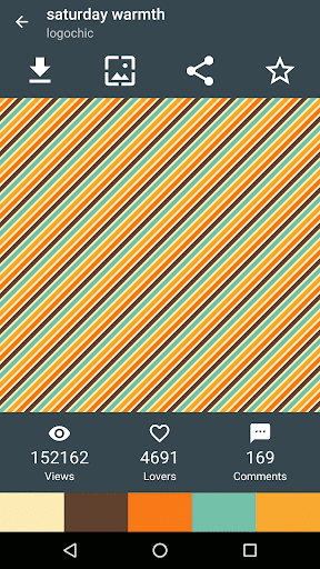 Проверено на Nexus 5 и Samsung Galaxy S5 Физические устройства. Другие устройства были протестированы в качестве виртуальных эмуляторов Android. Использовать Colourlovers Web API в соответствии с соответствующими условиями обслуживания.