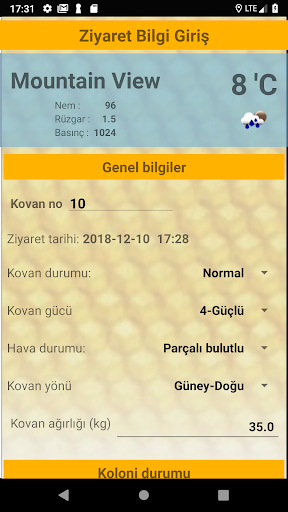 Пчеловодство - это техническая работа, а решения и приложения пчелы влияют на прямую эффективность и производство. Пчеловодство важно, чтобы следовать статусу вашей колонны пчелы, ульи и общим статусом вашей пчелы. Это также может быть обеспечено регулярной регистрацией. Вряд ли тяжело и практично использовать примечания на бумаге традиционно. Это приложение было разработано для пчеловодов и для удовлетворения потребности в пчеловодах. Вы сможете зарегистрировать свой визит в свою пчелу, используя свой телефон и более эффективно управлять своей обителью. В случае критических ситуаций вы можете повысить свою эффективность, имея дело с ульаями и колониями, которые вы должны быть обеспокоены визуальными оповещениями.