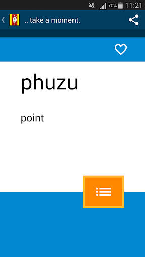 Популярные слов Зулу, доступные в приложении.Всего за несколько недель у вас будет существенное знание о Зулу словарном запасе!