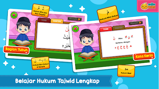 Исследование Tajwid - это сериал детских образовательных приложений, которые помогают детям научиться правильно читать Коран с законом Таджвида приятным способом. , Ихфа, Безумный закон, Закон монахини Тасидида и другие.Концепция обучения в этом приложении интерактивна с интересными играми и интересными голосами, так что дети не устали играть.
