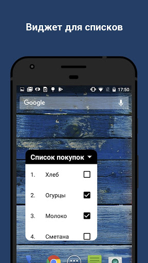 Виджет показа списка дел или покупок позволит всегда помнить о том, что предстоит сделать сегодня или купить в магазине.