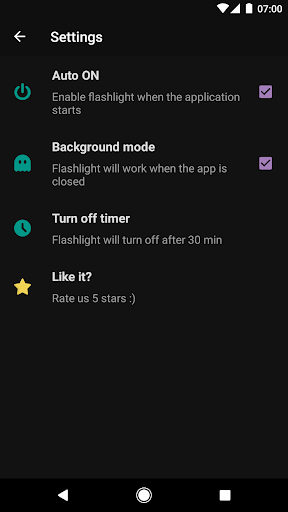Midnight Flashlight - это лучший фонарик для телефона на андроид. Фонарь использует мощную светодиодную вспышку и есть регулируемая подсветка экрана. Ваш телефон в один клик станет гораздо более полезным и превратится в