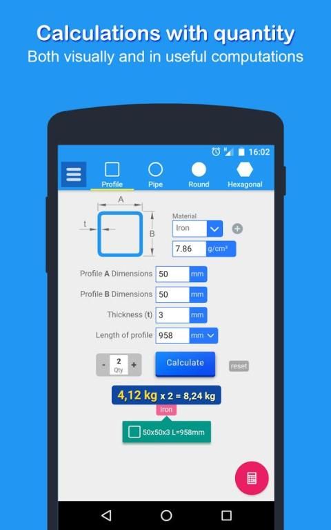 Профили, трубы, круглые стержни, расчет веса металлического листа очень легко сделать на вашем кармане.