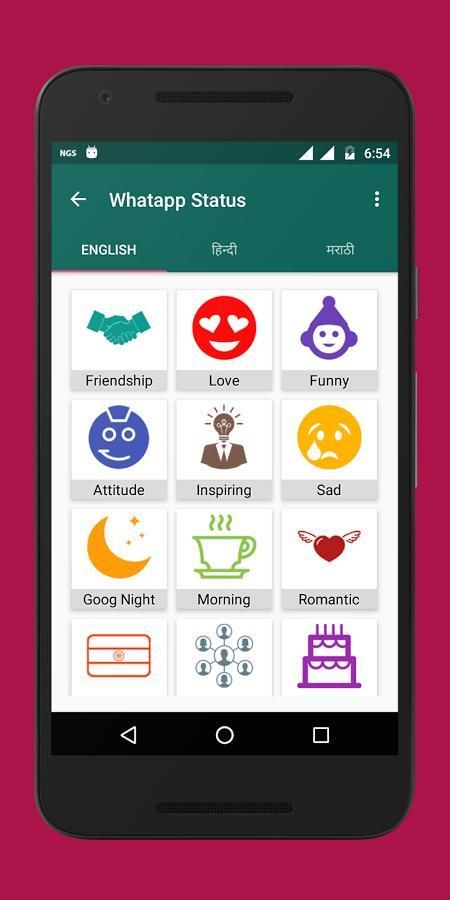 Вы можете найти статус & Цитаты для Whatsapp в тамильском, маратхи, хинди, английский и многое другое