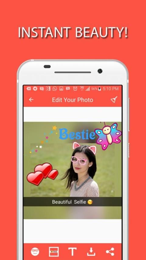 Мы обращаемся к главному официальному вебсайту для загрузки приложений. 20,000+ пользователи скачали последнюю версию Bestie Insta Beauty Camera в 9Apps бесплатно каждую неделю! Пользоваться им, чтобы обновить свои способности. Это горячее приложение было выпущено в 2016-12-02. Килк в 9Apps, чтобы узнать больше информаций о мобильном приложении.