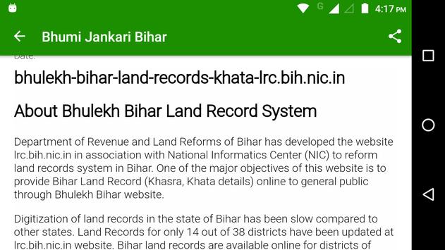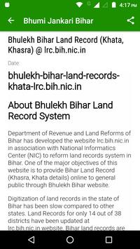 Bhumi Jankari Bihar app provides you important contact nos., circulars and you can search your land details in Bihar district wise.