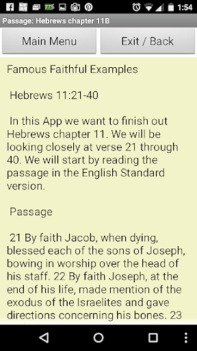 Bible Insight Hebrews 11B is an Android Application that helps people to better understand what the Bible says in the book of Hebrews Chapter 11 verses 21 through 40.