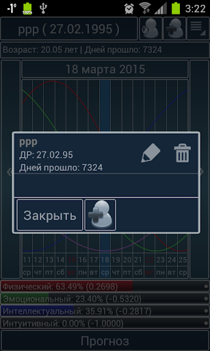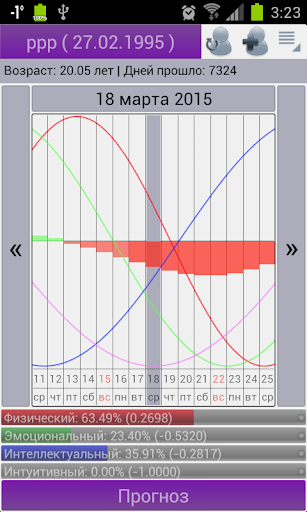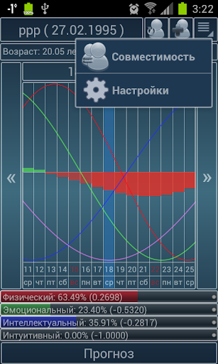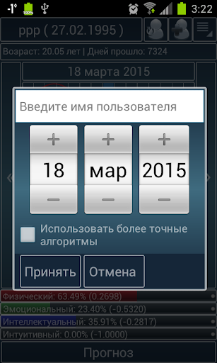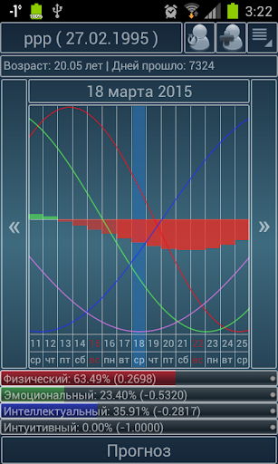 ►Поддерживает расчет биоритмов по двум алгоритмам на выбор: