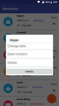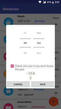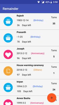 It's a Birthday Anniversary Reminder App as well as Birthday Reminder App with upcoming events, age, Alarm, import from contacts and Notification. It is also an all in one reminder as user can add custom events too. In this app user can add any number of birthdays, anniversaries and custom events. User can set alarm to ring it at particular time for every event.