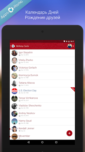 - получайте уведомления на телефон в день рождения вашего друга