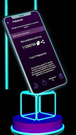 - Реферальная система: получай бонусы за каждого приглашенного пользователя: 0,0005 BTC на игровой счет.
