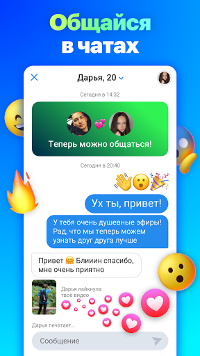 После взаимной подписки можно общаться в чате и узнать друг друга поближе.