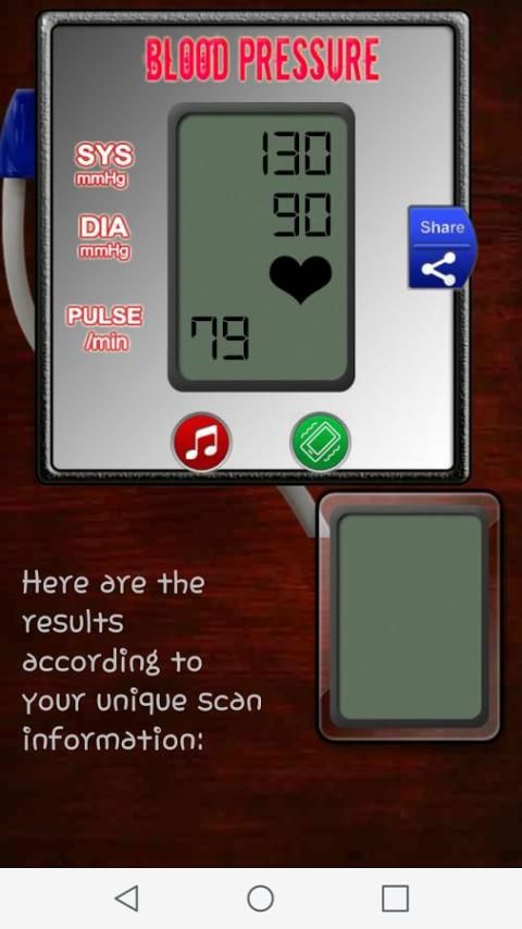 Disclaimer: Blood Pressure Scanner Prank is for entertainment purposes only. It does not calculates you blood pressure. Calculating Blood Pressure is not possible with your android device's screen and camera. The displayed results are random numbers. It is the best application for fooling your friends.