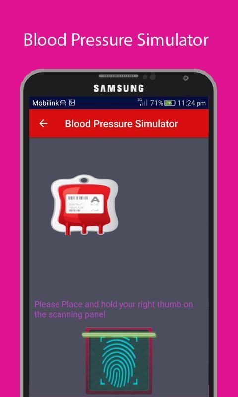 Кровь Simulator давления (BP Test шалость) является лучшим приложением, чтобы проверить кровяное давление. , Он разработан таким образом, что никто не может догадаться, что это реальное приложение или шалость, чтобы проверить BP. Это приложение является лишь приложением шалости или тренажер для расчета BP. Это приложение имеет несколько особенностей, которые