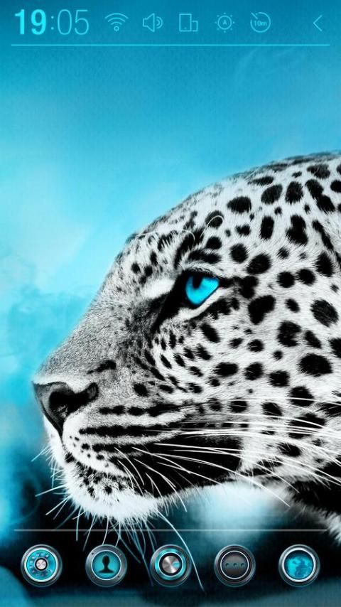 Look at the shining blue leopard's eyes.