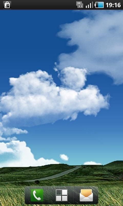 Blue Sky Live Wallpaper: A beautiful image of a grassy field with animated clouds pass in the background. This Free version has a full settings screen, so you can customize background colors/image, clouds positions. TO USE: Home->Press Menu->Wallpapers->LiveWallpapers Testing on HTC Desire/Nexus One. A big Thank You to the creates at Ownskin.com Please check out my other Live Wallpaper's and help by donating so I can continue making them. Thanks for your support. Content rating: Everyone