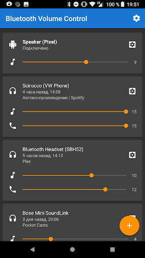 Приложение позволяет системе Андроид запомнить громкость различных устройств Bluetooth.