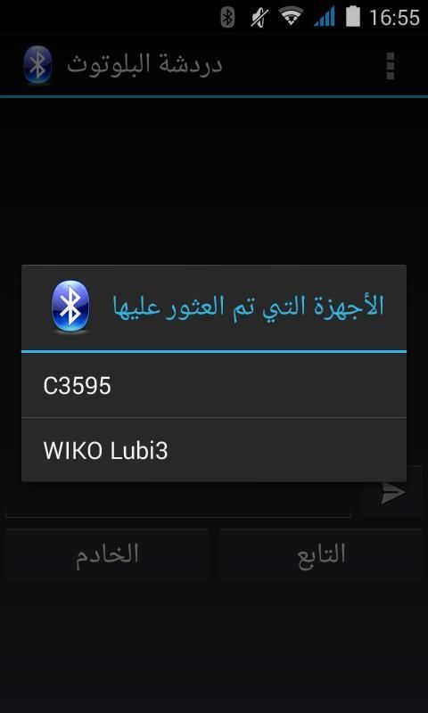 برنامج دردشة البلوتوث Bluetooth chat برنامج المحادثات النصية عبر البلوتوث bluetooth في اجهزة بويكت بي سي وسمارت فون وغيرها من الاجهزة التي تعمل على نظام التشغيل Android موبايل بكل سهولة ويسر وروعه الان استخدم البلوتوث في جوالك وكن الافضل بين اصحابك طبعأً يجب ان يكون البرنامج لديك ولدى صديقك وايضاً يجب ان تكون المسافة قريبة على مدى البلوتوث.