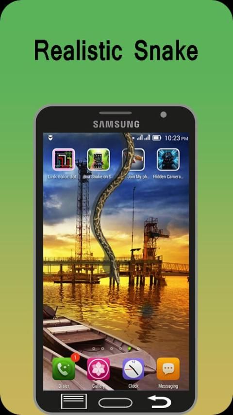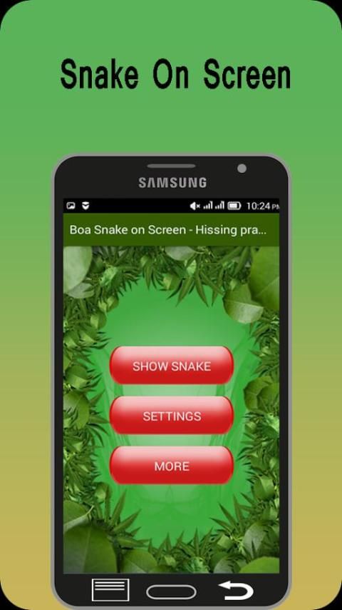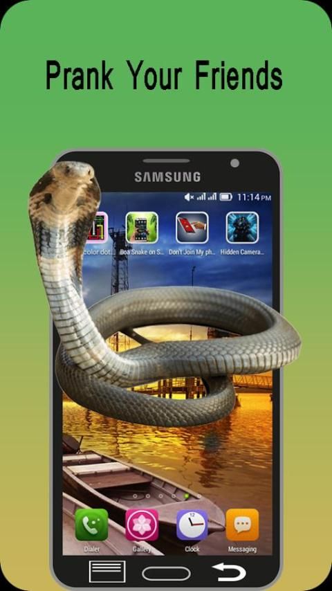 Открыть Boa змей на экран - Шипение шалости и установите время около нескольких seconds.Press: «Показать змеи». Приложение будет работать в фоновом режиме. Дайте телефон обратно в «жертва», он будет держать глаза на телефоне. Через несколько секунд, страшно змея появится на экране и будет пугать свой друг.
