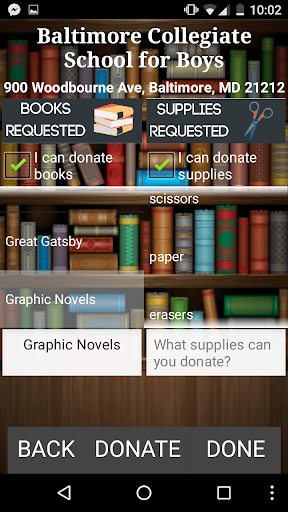 Our app, BooksForAll, aims to improves students’ education by channeling unused books and supplies to underprivileged schools. Worldwide, there are millions of people with abundant access to educational resources and supplies. However, many more schools and students are still in need of resources. Our app enables donors to donate their used books and supplies to local schools. These schools can request specific books, textbooks, school supplies, and other miscellaneous items. Once donors have confirmed their donations, the schools will receive a notification of when they will receive the donation. Books For All has the potential to provide innumerable students with the opportunity to succeed, because an education starts with access to books.