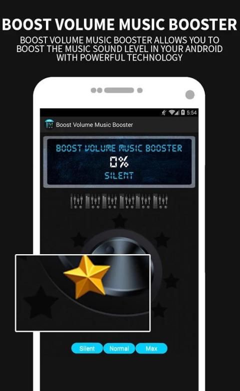 Повышение громкости музыки Booster для Android является отличным приложением управления громкостью, который контролирует громкость телефона Android для всех звуковых потоков (музыка, голос, сигнализация, система). Вы можете легко увеличить ваш телефонный звук на максимум только одним ключом.