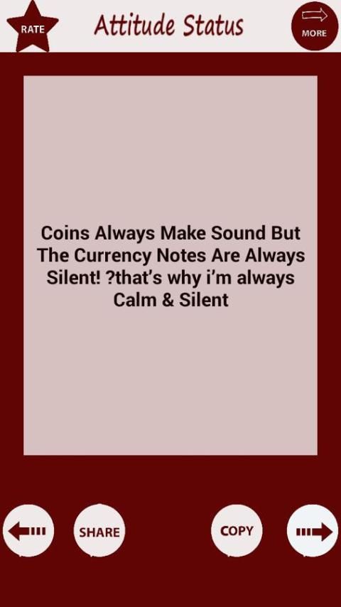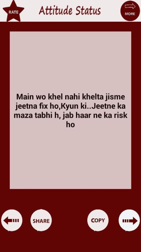если вы хотите, чтобы показать свое отношение к вашей социальной друзей, вы находитесь на правильном page.app содержат огромное разнообразие статуса и смс в др хинди и английский language.database применения является uptodated и периодически обновляться, так что пользователи могут иметь последнюю смс и статус в market.app не требует интернет, без пользователей интернет-услуг может использовать app.users могут обмениваться SMS и цитаты к разным социальным medium.hope U Like его ...