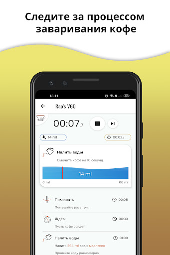 Углубите свои знания, Brew Timer поможет вам делать кофе как бариста.