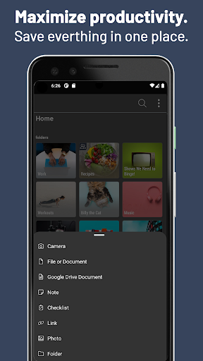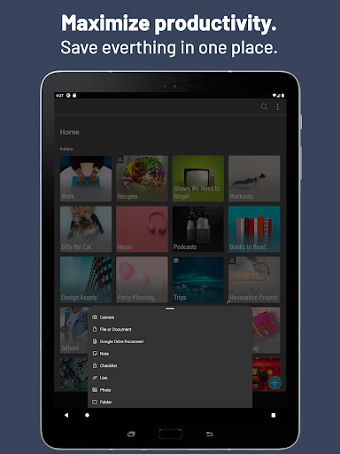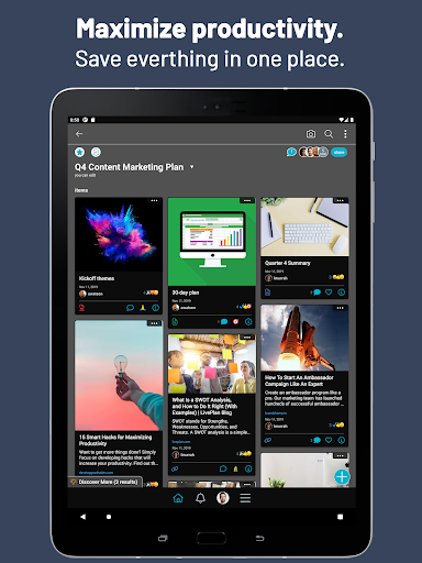• Сохранить любой контент бок о бок: ссылки, заметки, документы (PDFS, Word, Excel, Docs и т. Д.), Фотографии, видео, электронные письма и многое другое.