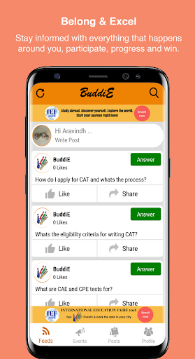 BuddiE is an application that helps students to be informed, get smarter and enjoy their campus life. The best help to a student most often comes from another student. The ease with which one approaches another for a share of info is the best among peers and so is the acceptance levels from one student to another. This is what makes them buddies to one another, who is always there to share and support. The application as an exclusive platform enables students to do just this. BuddiE essentially is a Student-help-Student platform created to make life interestingly interactive and supportive in letting you 'be you' and 'help each other'...to explore, learn, share, experience, enjoy and win!
