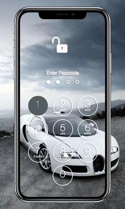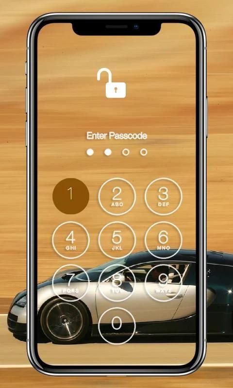 Bugatti шкафчик экрана с удивительными обоями, которые сделают ваш экран выглядеть красиво и персонализированными. Блокировка с помощью клавиатуры пароля